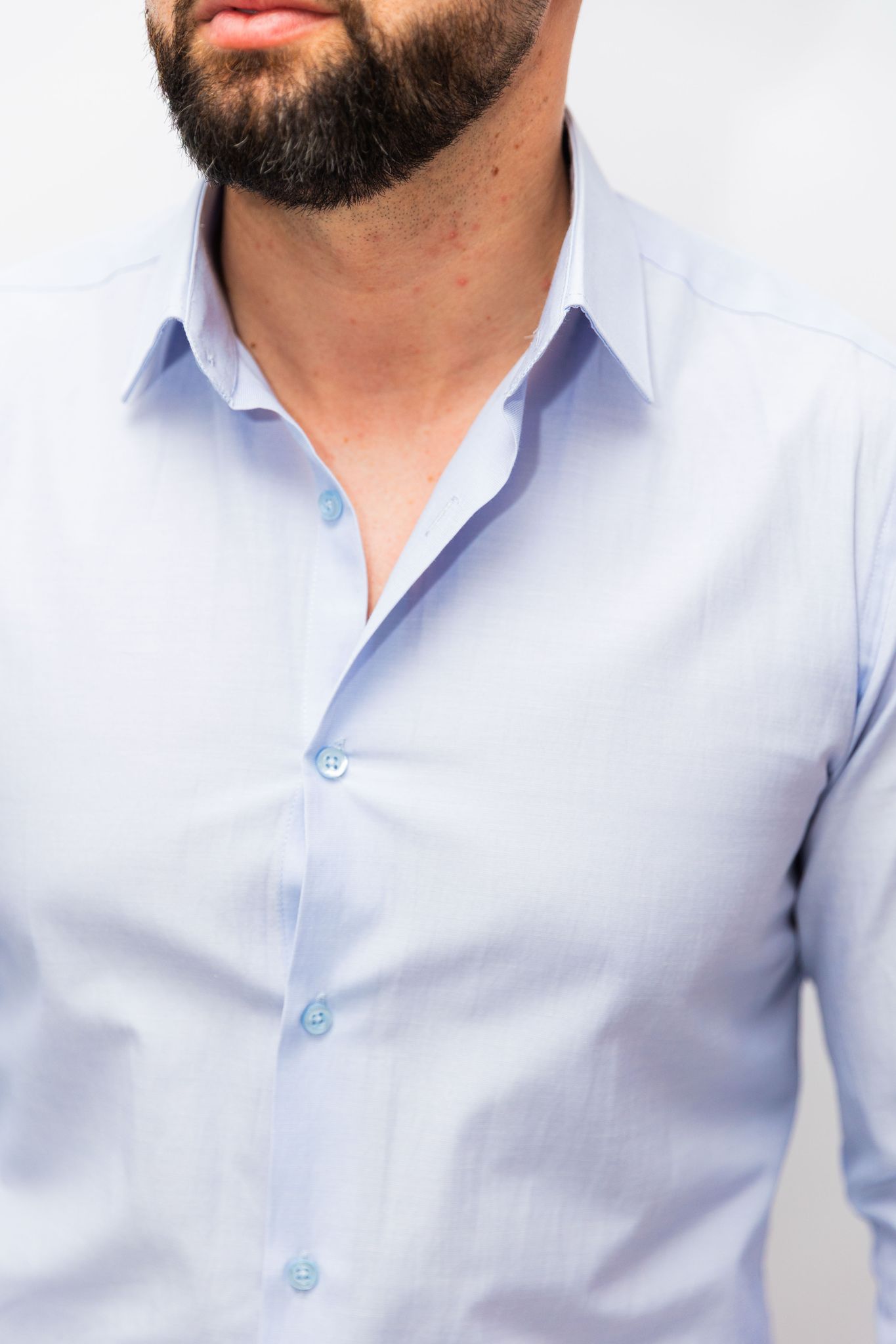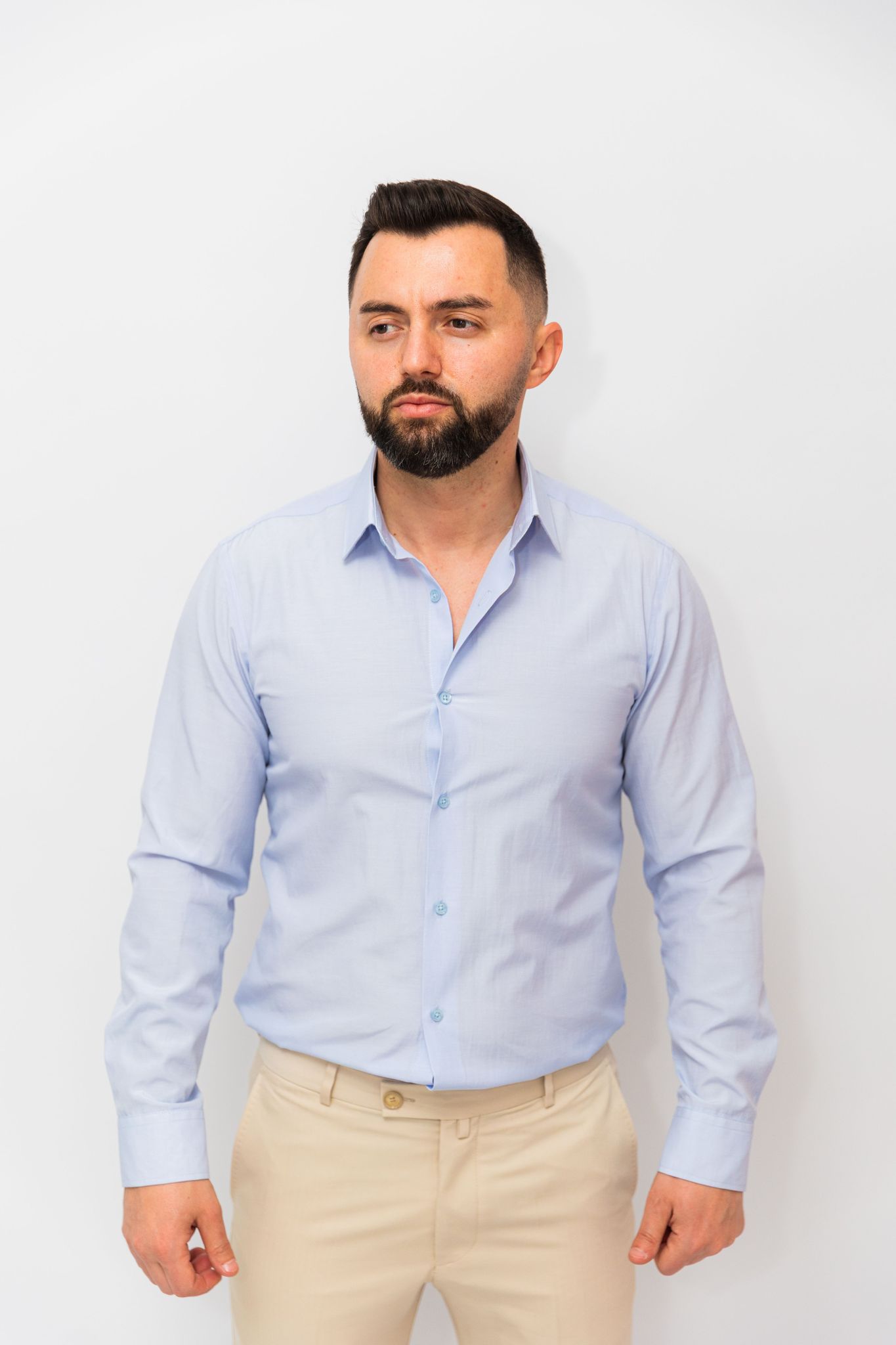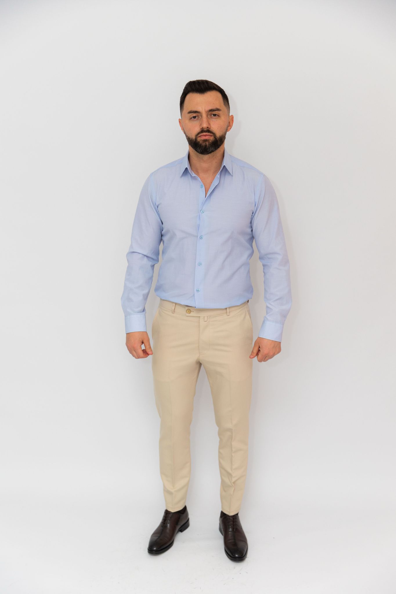 Cămasa Albastru Bleu Barbati Eleganta este confectionată dintr-o tesatură italiana de 80% Bumbac 20% Polyester Premium.Prezintă o croiala slim, guler intarit si mansete in colturi. A fost conceputa pentru barbatii dinamici, sa nu formeze cute evidente. Poate fi asortata atat la blugi cat si la pantaloni eleganti.