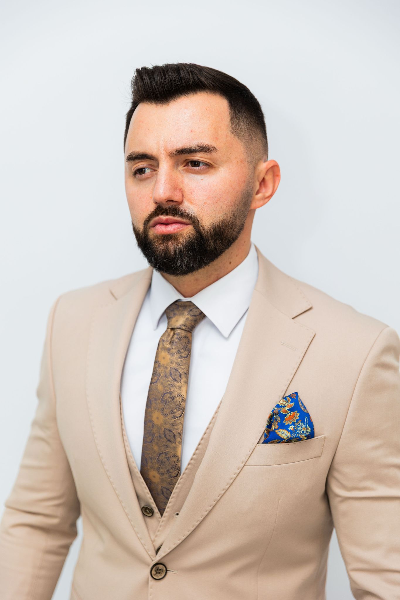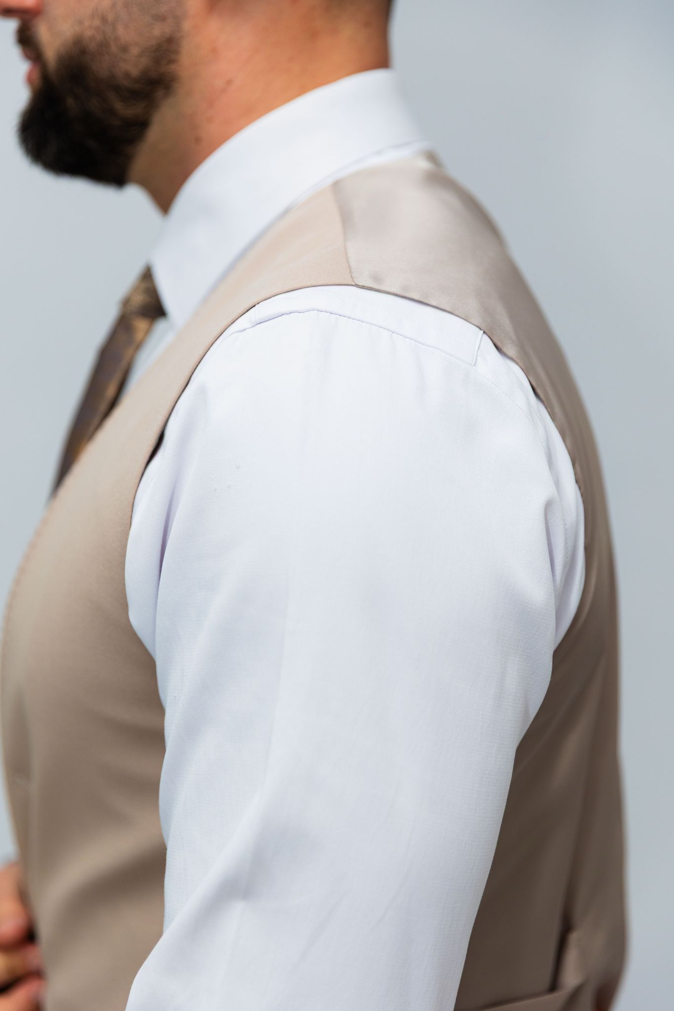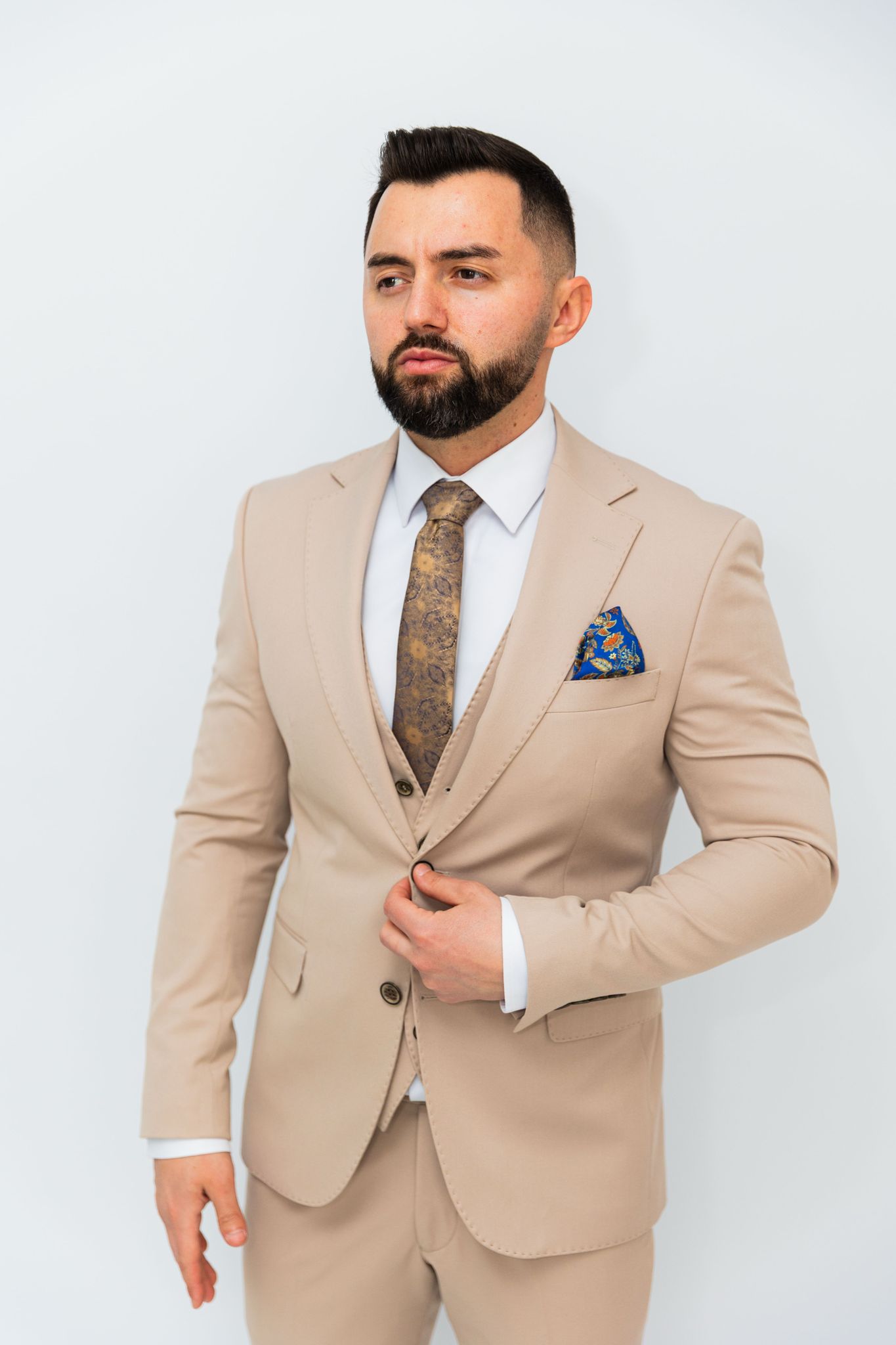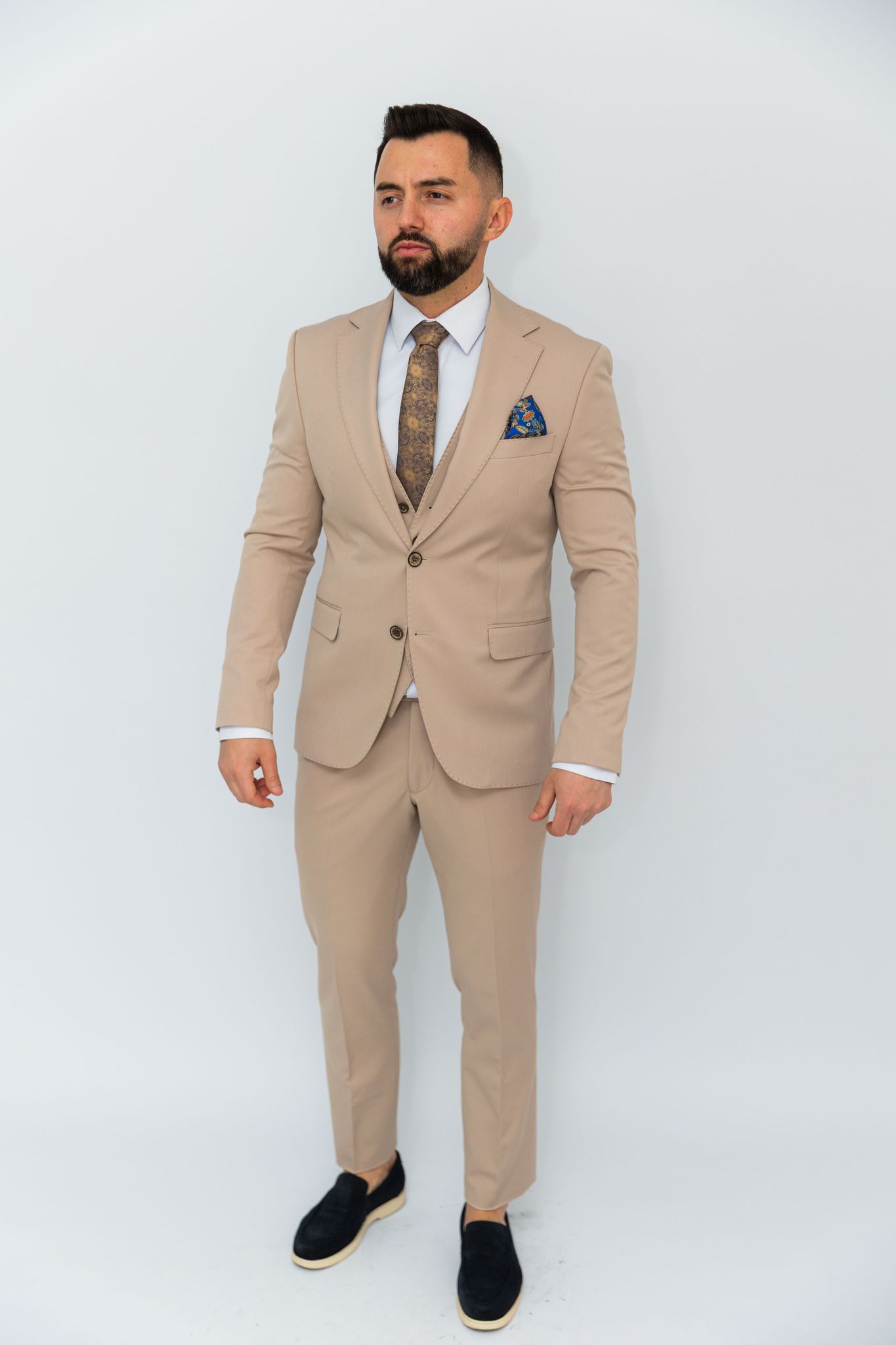 Costum Crem Nisip Smart Casual, croială slim fit.