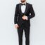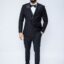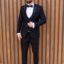 Costum de Mire & Naș Smoking Negru, din 88% lână Super 160’s, cu revere satinate și croială slim fit, ideal pentru evenimente elegante.