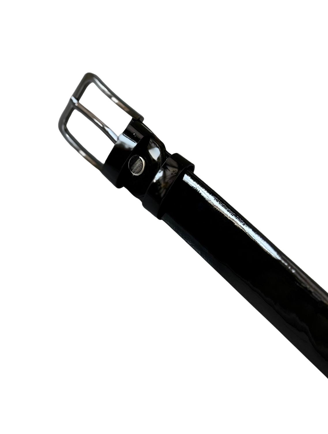 Curea Barbati Negru Lucios confectionata din 100% Piele Naturala de Vitel la exterior cat si 100% piele buffolo naturala la interior. Contine terminatie din piele naturala de vita si catarama metalica.